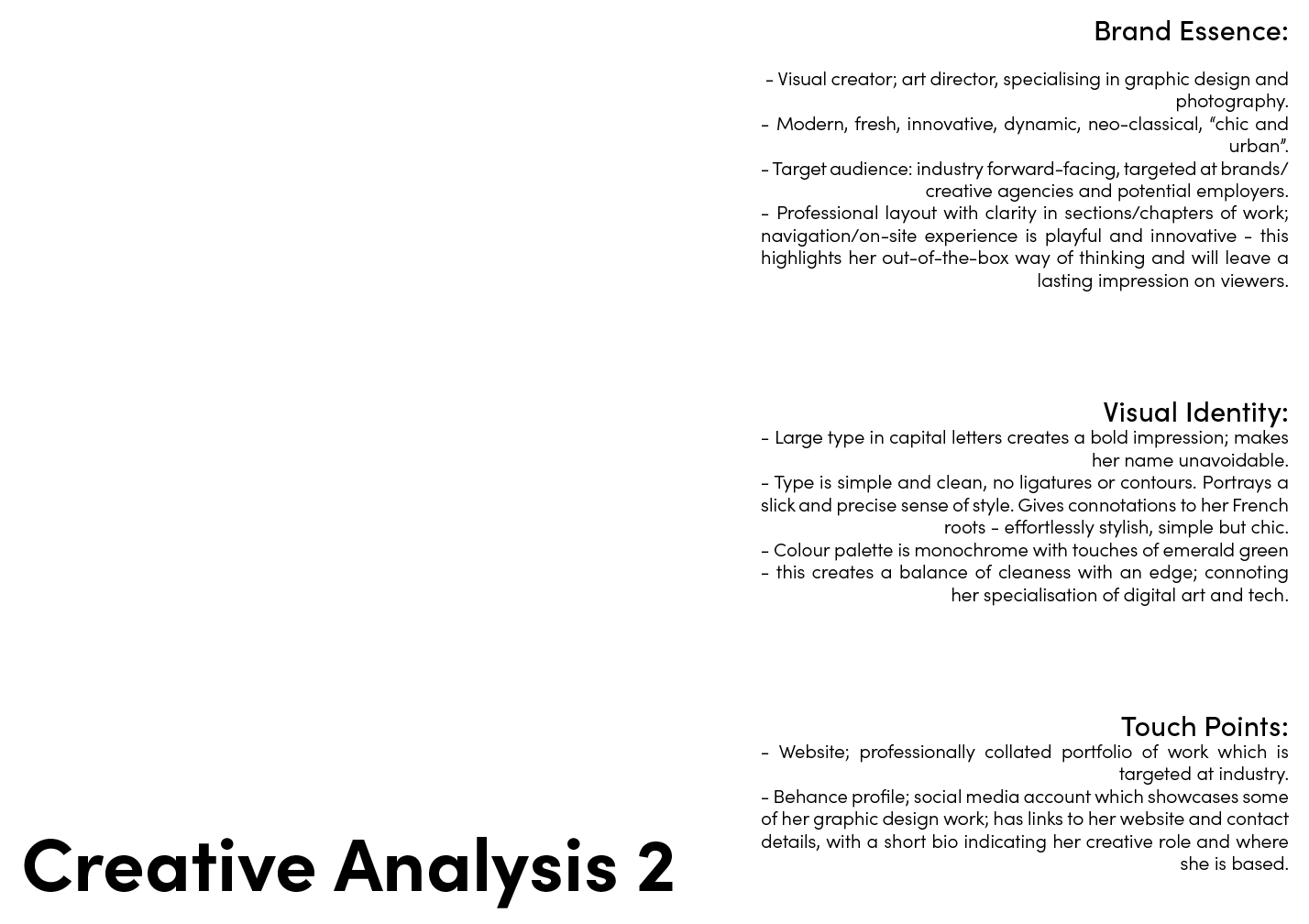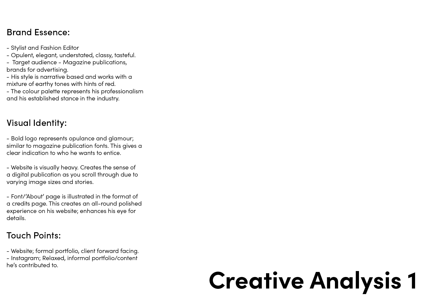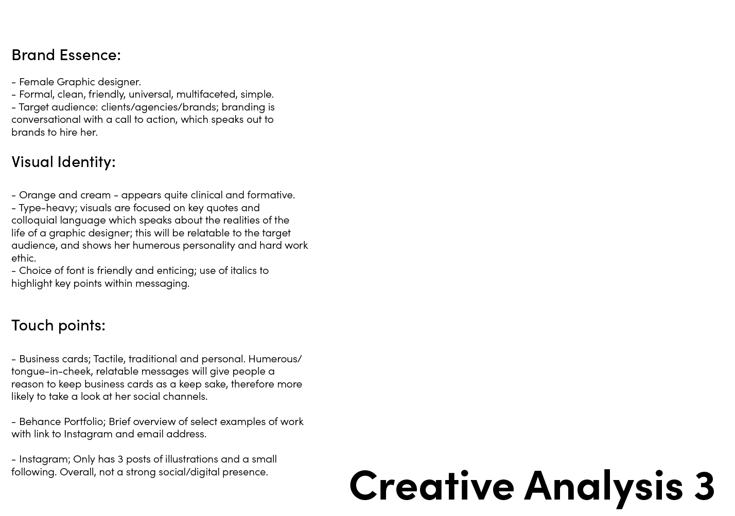 Prior to creating concepts, I undertook an in-depth analysis into an array of creatives, to gain a broader perspective on the potential and inspiration of personal branding.
