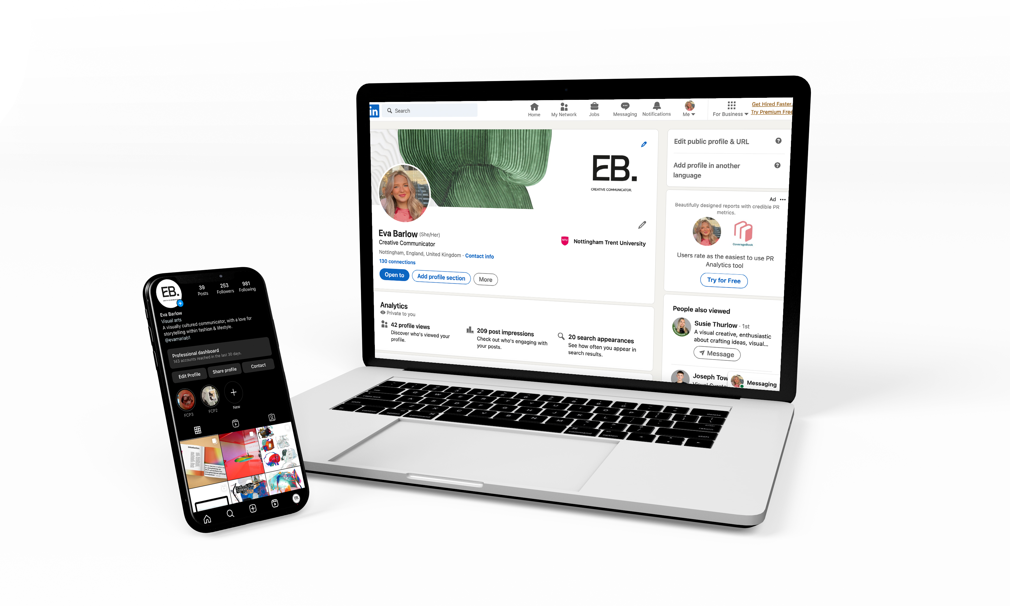 The design is simple and statement, with bold, black type and accents of green shown in the visual for my LinkedIn banner.